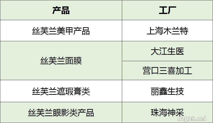 丝芙兰旗下的美甲类产品为上海木兰特代工,眼影类产品则是由珠海神采代工。