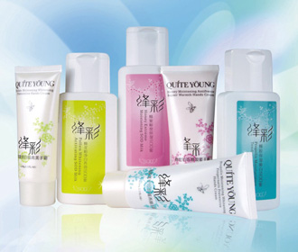 护肤手册、DM单、海报、PVC袋、特约经销商加盟牌、产品展示架、吊牌、促销服装、促销展台等。