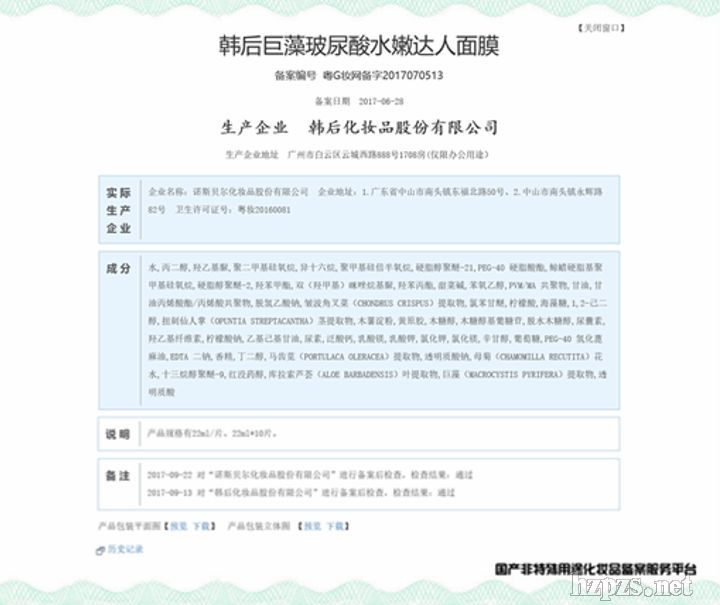 一款化妆品上市之前的必要步骤是什么?答案之一就是“备案”。 我国政府在2013年颁布了《国产非特殊用途化妆品备案管理办法》,规定自2014年6月1日起,国产非特殊用途化妆品上市前应按照《国产非特殊用途化妆品信息备案规定》的要求,进行产品信息网上备案,备案信息经省级食品药品监管部门确认,由国家食品药品监管总局政务网统一公布。 简单来说,如果一款化妆品在国家食品药品监督管理局(以下简称食药监局)上完成了备案,就表明它就有了“身份”,可以上市销售了。反过来说,没有经过备案就上市销售的化妆品,一经查出则产品停售、责令整改,甚至会受到处罚。 不过,以上提到的“非特殊用途化妆品”是什么?化妆品备案中又有哪些问题值得关注呢?下面我们就来说一说。 一、化妆品备案规范 首先从分类上说,化妆品可分为特殊用途的化妆品和非特殊用途的化妆品。 特殊用途的化妆品包括育发、染发、烫发、脱毛、美乳、健美、除臭、祛斑和防晒9种,除了这些以外的化妆品都叫做非特殊用途化妆品(以下简称非特化妆品),也就是普通化妆品。 一般情况下,普通化妆品只要有药监局备案就可以上市销售,而特殊用途化妆品则需要严格审批。也就是说,特殊用途的化妆品上市前需要获得行政许可批件,并在网上备案;非特化妆品上市的两个月内,在省级食品药品监督管理部门申请备案即可(备案信息经省级食品药品监管部门确认,由国家食品药品监管总局政务网统一公布)。 值得注意的是,国产特殊用途化妆品跟进口化妆品(包括特殊和非特两类)属于一个系统,可以直接在食药监局网站上的化妆品栏目查询。 而非特殊用途化妆品备案信息需要在国产非特类化妆品备案服务平台查询。 二、化妆品备案查询 想要查询国产非特化妆品的备案信息,可以登录http://125.35.6.80:8080/ftba/fw.jsp进入“国产非特殊用途化妆品备案服务平台”。  输入你想查询的产品名称,即可找到该产品的备案信息(以韩后某产品为例,如下图所示)。  从图中我们不难发现,一个产品的“生产企业”和“实际生产企业”有时候是不一样的。实际上,如果是委托生产的产品,委托双方应当分别向所在地行政区域内的省级食品药品监管部门报送备案信息。 省级食品药品监管部门收到企业备案信息后,会在在5个工作日内组织完成对产品的核查。如果备案审核通过,我们就能在非特殊化妆品服务平台查到备案信息了,产品即可上市销售。随后,监管部门还会在对该产品进行一次产品实物的检测,如果是不属于备案产品范围的、备案信息不齐全或不符合规定形式的化妆品,食品药品监管部门会在5个工作日内告知企业并说明理由。 三、化妆品备案的注意事项 不过,值得注意的是,我们常会在一些化妆品的备案信息里看见如“责令改正”或者“未备案”的字样,这是否说明该产品不符合生产规范呢? 就化妆品备案中经常出现的两大问题,我们咨询了资深化妆品研发、化妆品分析评论网站“真魅博客”的创始人瑞可老师。 问题1:一款化妆品出现“责令改正”的字样,是否说明该产品有问题?  瑞可老师:并不能说明一定有产品质量问题。只要你提交了备案信息,系统里面有你的记录,就代表你已经在备案了。但备案审核的信息只是资料文件与设计图,后期会对实物进行审核,这时如果有发现不符合备案规定的情况,会有因此责令改正的现象发生(比如因为实际印刷的中文字体太小了等)。 据了解,省级食品药品监督管理局会在备案后3个月内开展对备案产品的实质检查,发现不符合备案规定的,相关部门会责令改正,并在产品备案信息里进行标注;但如果是违反的,则依法立案查处。 而这里的责令改正,一般是指产品名称不符要求、生产记录不规范、相关材料与备案信息不符等。在备案信息提交后,因产品升级引起的成分变化和包装更改也都会被责令改正,需要重新提交资料备案,只需将相关资料更新和补充齐全即可备案通过。 而产品质量出现问题的情况都不会体现在化妆品备案里,国家会通过抽检或飞行检查等方式对市面上的化妆品进行检验,并将出现质量问题的产品或企业以通告的形式发布在国家食品药品监督管理总局网站上。具体情况可参考《化妆品卫生监督条例实施细则》、《化妆品行政许可检验管理办法》和《化妆品卫生监督条例》。 问题2:如下图示,登记在案的2个生产企业中,一个显示未备案,另一个备案通过,这说明了什么?  瑞可老师:有两个企业说明实际生产企业有两个,可能一个是料体的生产企业,一个是灌装生产企业,或者两者之间是委托加工关系。有委托加工关系的情况下,实际生产企业所在地FDA要分别批准备案材料。“未备案”不一定说明质量问题,也可能是那家公司所在地的FDA还没有批准备案材料。 关于“未备案”的情况,除了瑞可老师回答的这种情况,还可能有下面2种情况: 1、当委托方只委托了一家生产企业进行生产,但实际生产企业未及时联系委托方,或者实际生产企业所在地的食品药品监督管理局还没有批准备案材料,则该企业会出现“未备案”的情况。 2、如果委托方不打算生产某样产品了,导致实际生产企业并没有生产,那么也会出现“未备案”的情况。在这里,由于产品并未生产上市,所以备案信息只代表一个申请记录,没有其它意义。 通常来说,委托方可委托一家或多