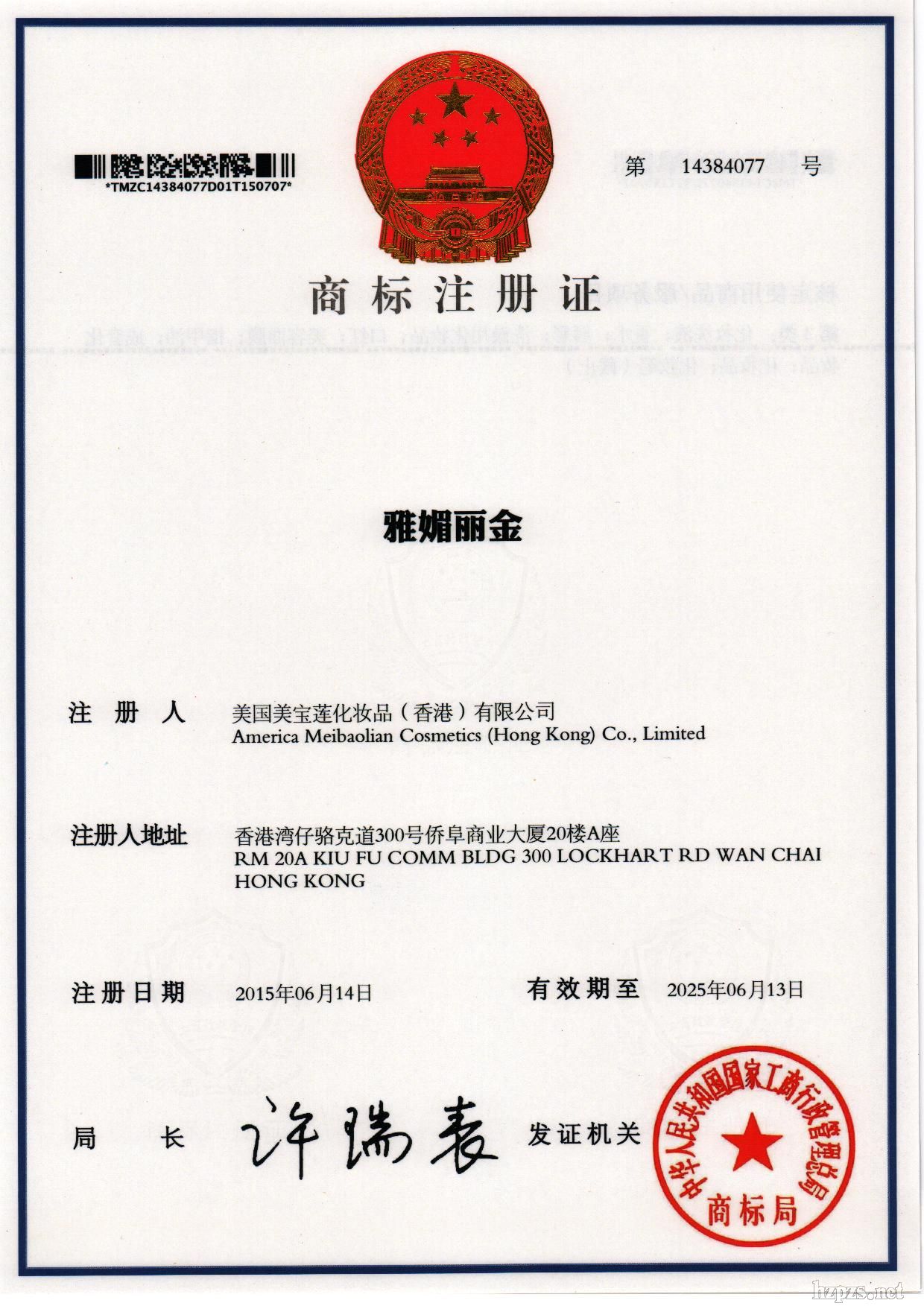 美国美宝莲化妆品(香港)有限公司 梁国强 地 址: 白云区江高镇私企区