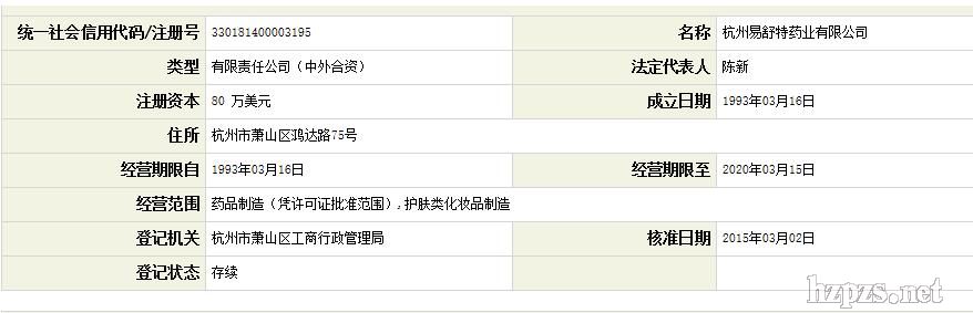 杭州易舒特药业有限公司 梁小姐 地 址: 杭州市萧山区鸿达路75号(311231