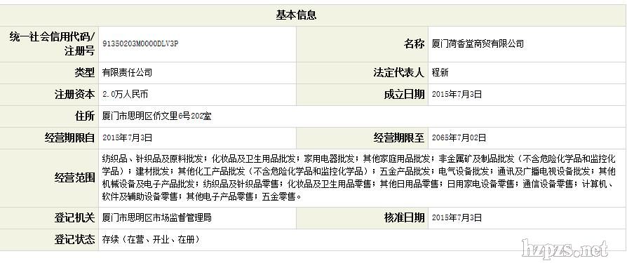 厦门荷香堂商贸有限公司 许婵 地 址: 厦门湖里嘉禾路566号