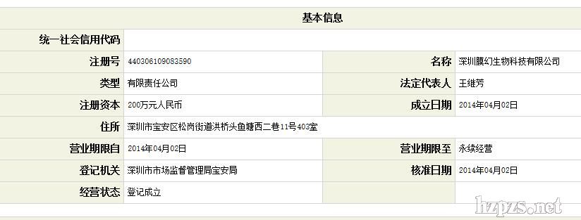 深圳膜幻生物科技有限公司 王继平 地 址: 深圳市宝安区松岗大道72号鑫永盛大厦315