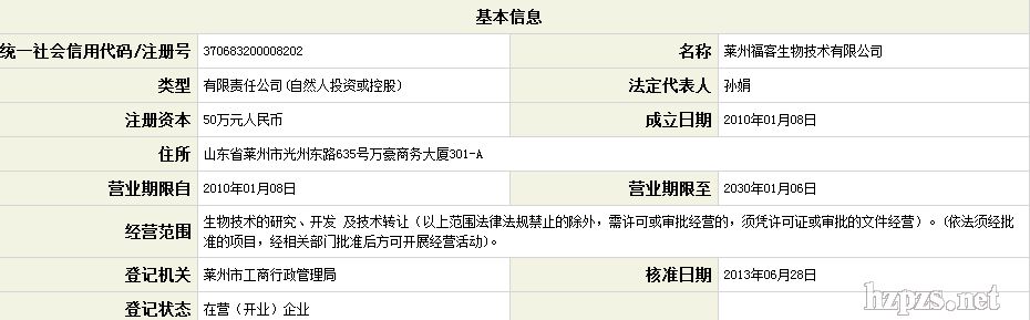 莱州福客生物技术有限公司 孙娟 女士 地 址: 山东 威海市 科技路