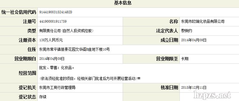 东莞市欧瑞化妆品有限公司 王先生 地 址: 东莞市常平镇丽景花园文华阁B座110室