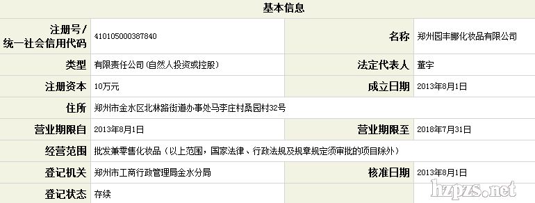 郑州园丰娜化妆品有限公司 刘玉娥 女士 地 址: 金水区 北林路桑园村32号