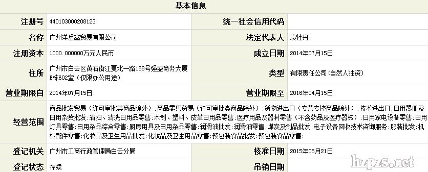 广州洋岳鑫贸易有限公司 袁经理 地 址: 白云区黄石东路江夏强盛商务大厦E栋602