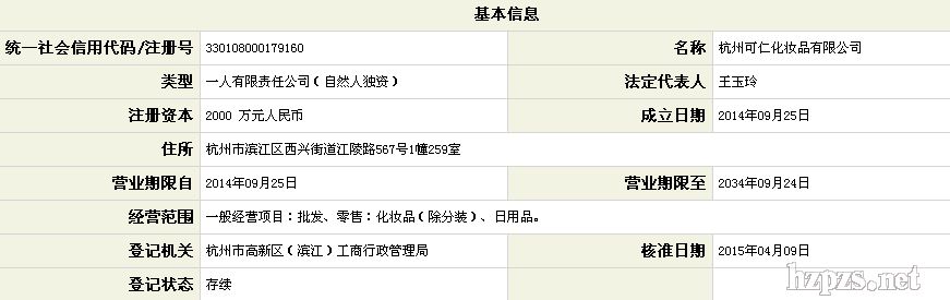 杭州可仁化妆品公司