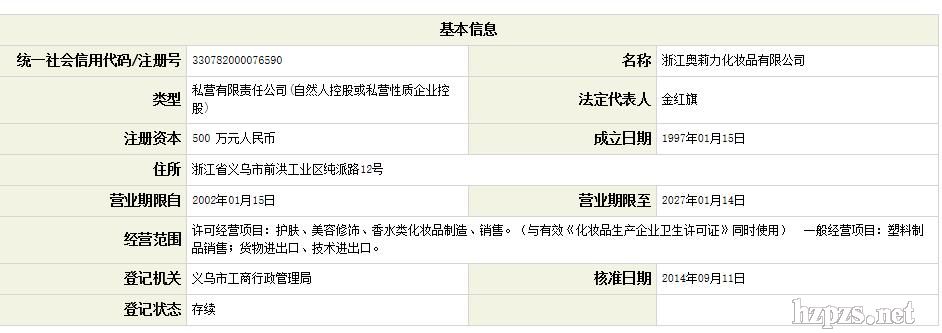 浙江奥莉力化妆品有限公司 奥莉力 地 址: 浙江省义乌市前洪工业区纯派路3号