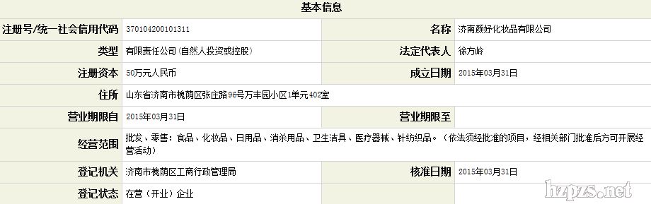 济南颜妤化妆品有限公司 徐方岭 先生 地 址: 济南市槐荫区 张庄路96号