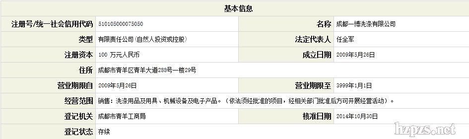 成都一博洗涤有限公司 杨方辉 先生 地 址: 成都市 青羊区青羊大道288号附29号