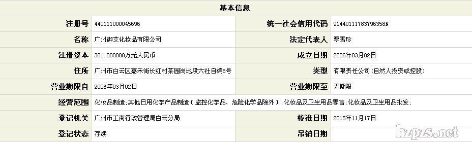 广州御艾化妆品有限公司 李菊桃 地 址: 广州市白云区 长红第二工业区工业一路8号