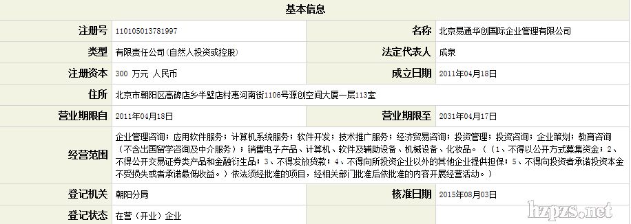 北京易通华创国际企业管理有限公司