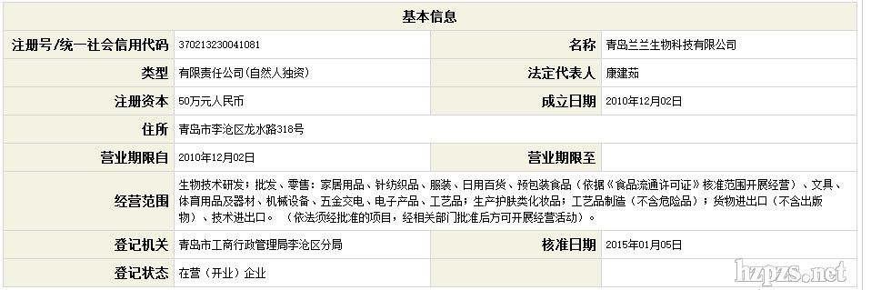 青岛兰兰生物科技有限公司 康建茹 女士 地 址: 青岛市李沧区 青岛市龙水路318号