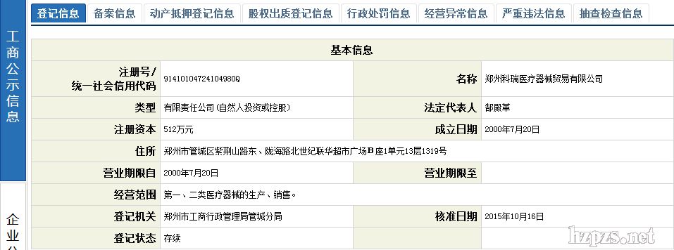 郑州科瑞医疗器械贸易有限公司 黄辉 地 址: 郑州市陇海东路66号