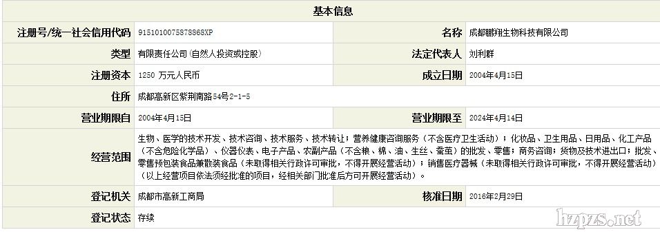 成都鹏翔生物科技有限公司 陈升 地 址: 成都市天府三街香年广场3栋18楼1809