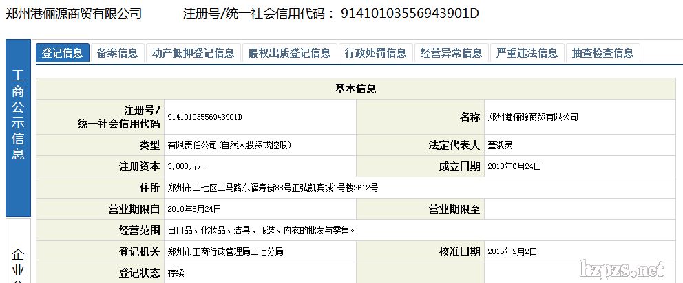 郑州港俪源商贸有限公司 港俪源 地 址: 郑州市二七区 福寿街西 二马路东 正弘凯宾城1号楼26楼2612室