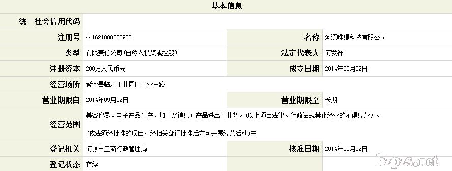 美国唯缇美容科技有限公司 总部 地 址: 深圳市龙华新区大浪谭罗安宏基科技大厦1003-1005