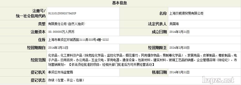 上海贝榄得贸易有限公司 齐维霖 地 址: 上海市浦东新区 康桥镇秀浦路788 弄10号楼903室