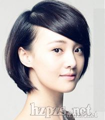 1、甜美的一款时尚的短发烫发,纯黑色的发色加上粉嫩的皮肤显得无比时尚而且很有气质感。