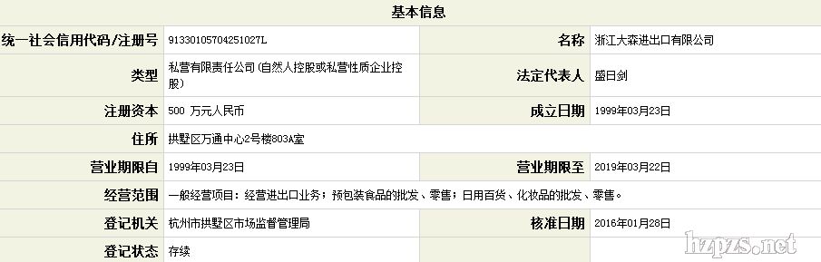 浙江大森进出口有限公司 可丝百俪 地 址: 杭州市拱墅区大关路189号万通中心E幢803室