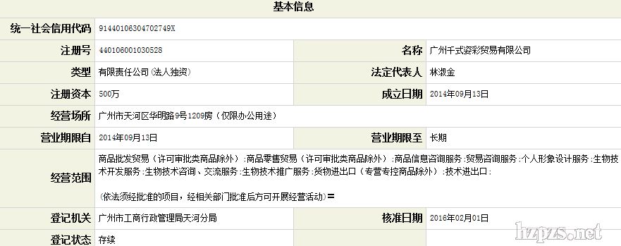 广州千式姿彩贸易有限公司 康健 地 址: 广州市天河区珠江新城华明路9号华普广场西塔1208-1212室