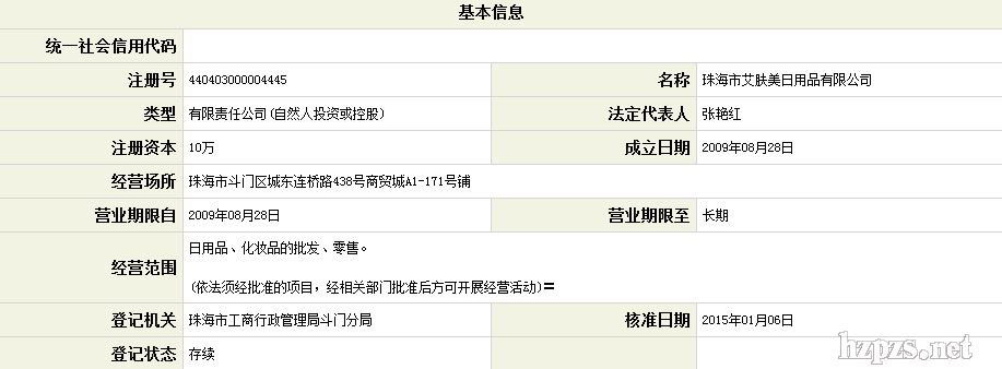 珠海市艾肤美日用品有限公司 张小姐 地 址: 广东 珠海 斗门