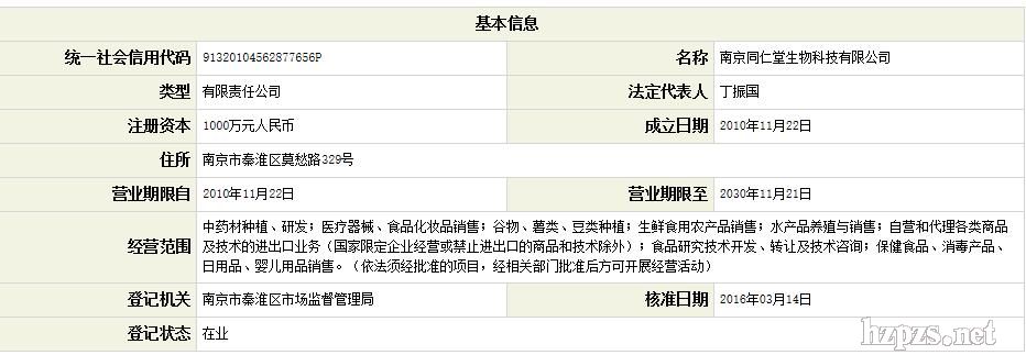 南京同仁堂生物科技有限公司 总机 地 址: 南京市秦淮区莫愁路329号