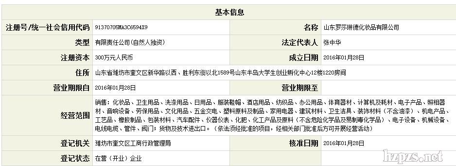 山东罗莎琳德化妆品有限公司 张辉 地 址: 山东省潍坊市奎文区东风街新华路世纪环球中心1220