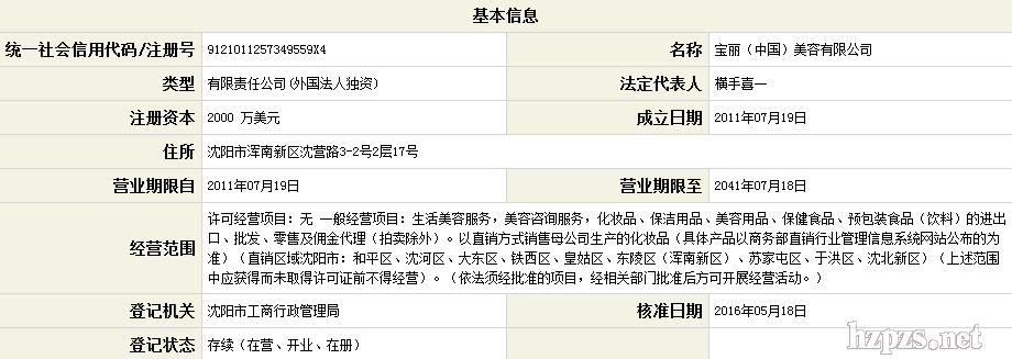 宝丽(中国)美容有限公司 宝丽 地 址: 沈阳市和平区青年大街286号华润大厦第19层07单元