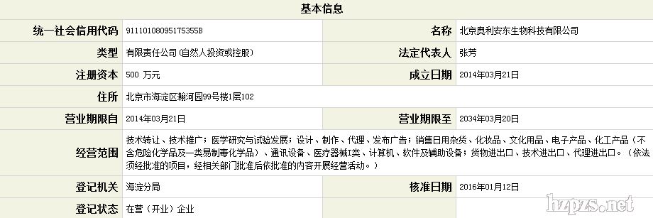 北京奥利安东生物科技有限公司 张芳 地 址: 瀚河园路自在香山99-2