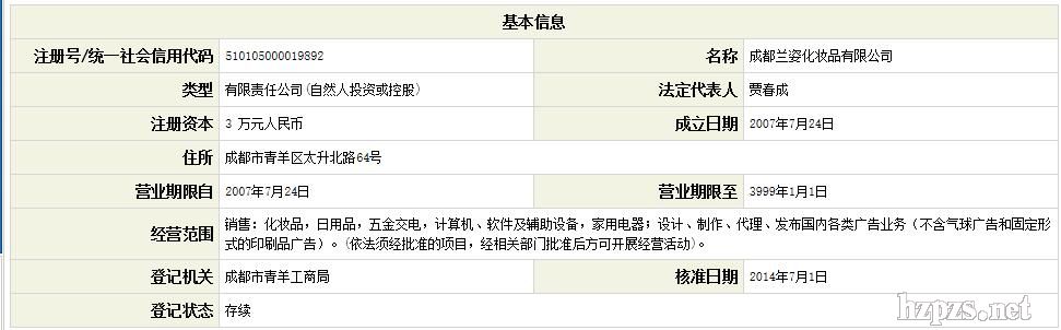 成都兰姿化妆品有限公司 魏总 地 址: 成都市金牛区梁家巷南玻大厦B座602