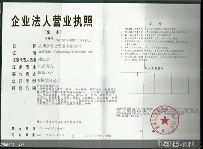 杭州伊人香屋贸易有限公司 范小姐 地 址: 杭州市江干区笕丁路168号13-1-402