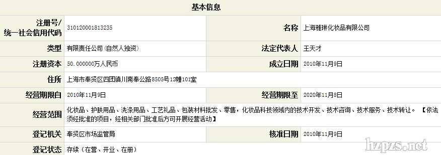 上海雅琳化妆品有限公司 郑静媛 地 址: 上海市闵行区闵城路199弄