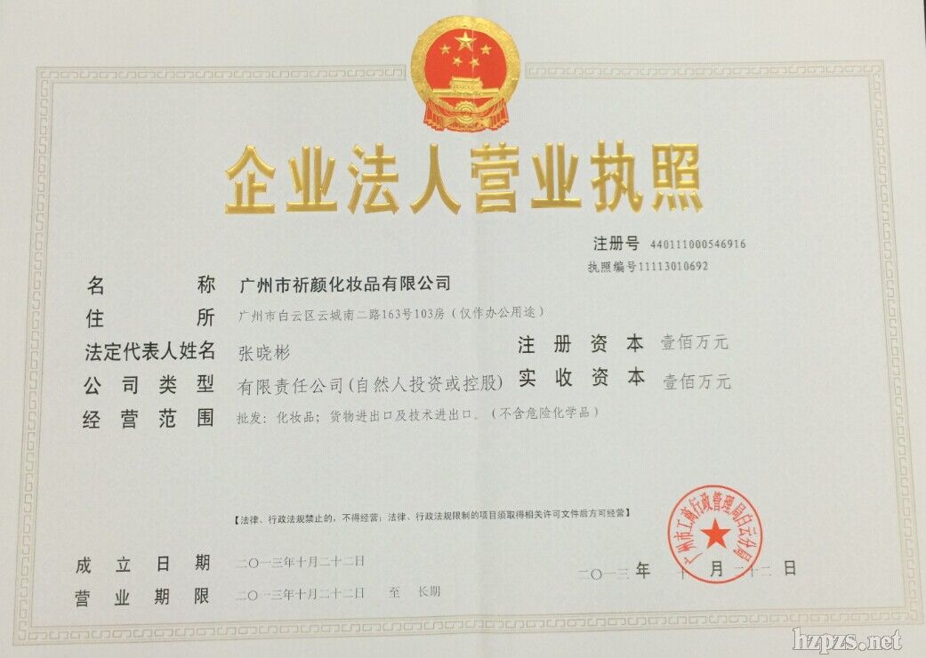 广州祈颜化妆品有限公司 莫先生 地 址: 广州市白云区万达广场C区5栋1101