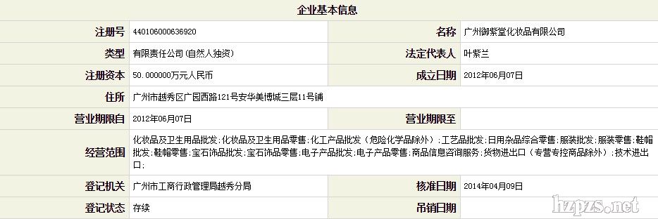 广州御紫堂化妆品有限公司 叶紫兰 地 址: 广东 广州市越秀区 广园西路121号美博城3楼11号