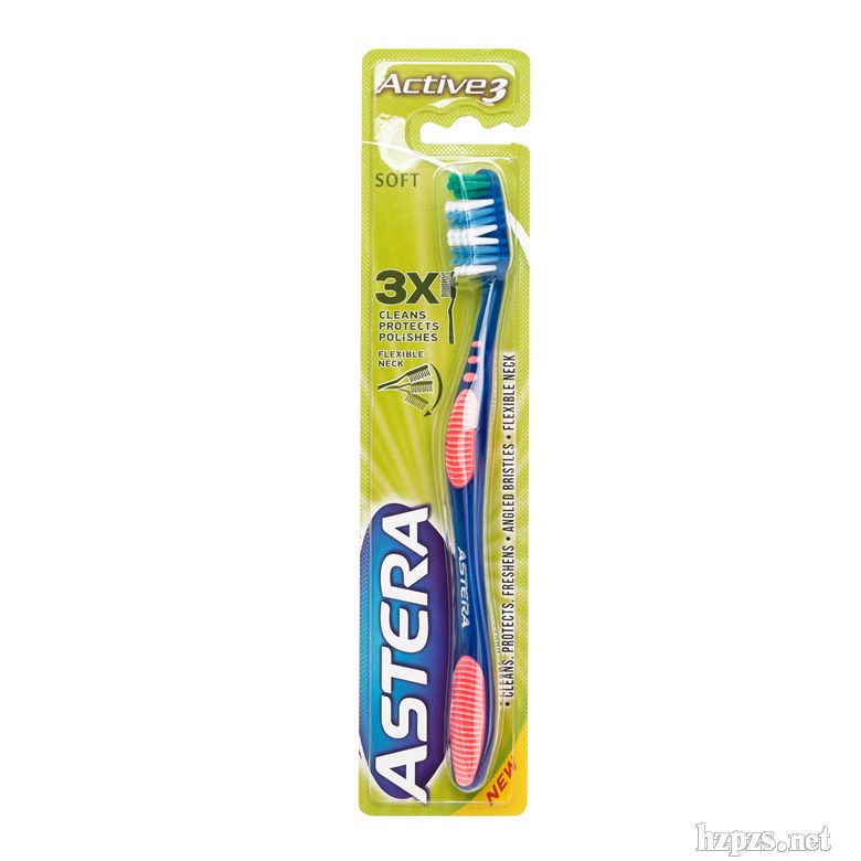 牙刷,用于清洁牙齿的一种工具,常配以牙膏一起进行清洁作业。普通牙刷的梳头形状一般可分为两类,分别是方形和钻石型。方型的刷头可以有效的清洁牙齿的表面,而钻石型的刷头的末端较为尖锐,这样可以有效的深入牙齿缝隙进行清扫。无论是哪种刷头,都同样具备清洁的功能,消费者应按照自身的口腔大小、张口程度与个人习惯来进行购买。在刷毛的选择上,最好选择一些毛质较软的或是软硬适中的。可是,也不能选择太软的,太软的刷头很难把口腔清理干净。而对于牙刷柄的选择,可以选择一些弯曲的手柄,比起直柄来,弯曲的更容易深入口腔进行清理作业。