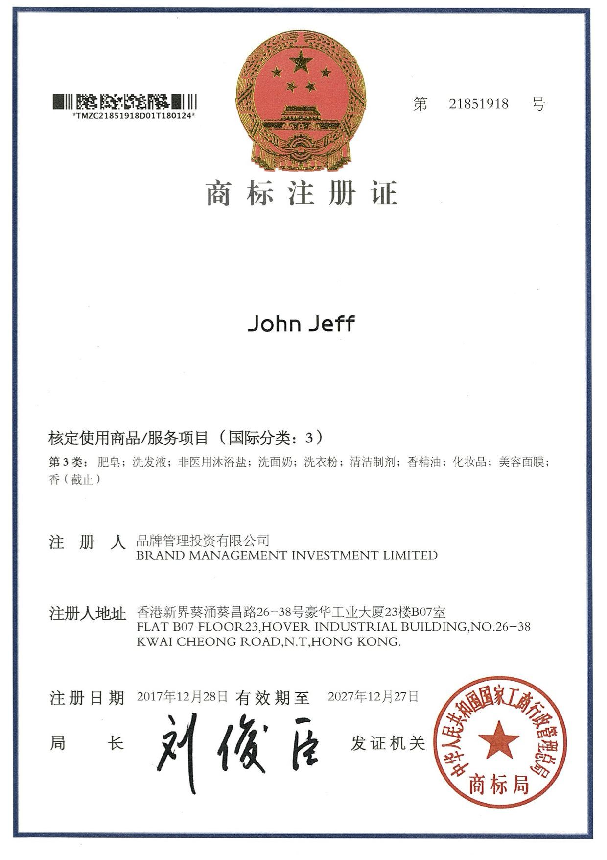 上海约翰杰夫化妆品